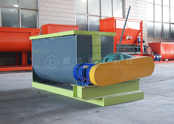 臥式攪拌機(jī)利用一根加裝螺旋葉的軸旋轉(zhuǎn),在輸送干灰等粉狀物料的同時(shí)加水?dāng)嚢,均勻加濕干灰粉狀物料,達(dá)到使加濕物料不冒干灰又不會(huì)滲出水滴的目的。