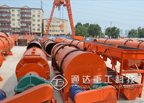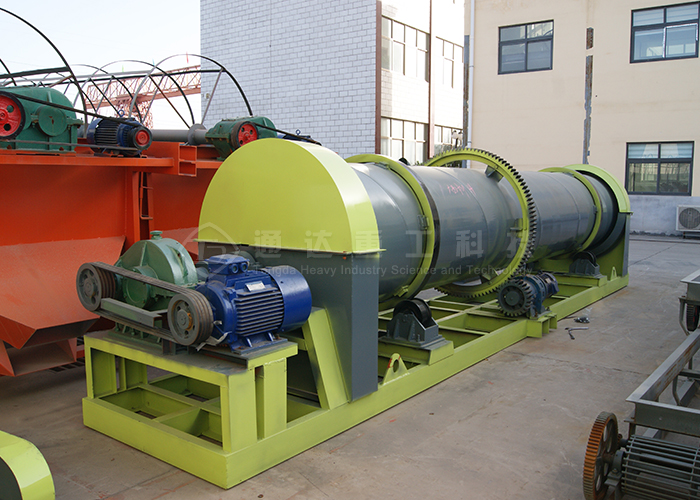 通達(dá)重工新研發(fā)的有機(jī)肥轉(zhuǎn)鼓攪齒兩用造粒機(jī)轉(zhuǎn)鼓造粒機(jī)是一種可將物料制造成特定形狀的成型機(jī)械。轉(zhuǎn)鼓造粒機(jī)是復(fù)合肥行業(yè)的關(guān)鍵設(shè)備,適用于冷、熱造粒以及高、中低濃度復(fù)混肥的大規(guī)模生產(chǎn)。主要工作方式為團(tuán)粒濕法造粒,通過(guò)一定量的水或蒸汽,使基礎(chǔ)肥料在筒體內(nèi)調(diào)濕后充分化學(xué)反應(yīng),在一定的液相條件下,借助筒體的旋轉(zhuǎn)運(yùn)動(dòng),使物料粒子間產(chǎn)生擠壓力團(tuán)聚成球。該機(jī)筒體采用特殊的橡膠板內(nèi)襯或耐酸不銹鋼襯板,實(shí)現(xiàn)了自動(dòng)除疤、脫瘤,取消了傳統(tǒng)的刮刀裝置。該機(jī)具有成球強(qiáng)度高、外觀質(zhì)量好、耐腐蝕、耐磨損、能耗低、使用壽命長(zhǎng)、操作維修方便等特點(diǎn)。濕法攪齒造粒機(jī)利用高速回轉(zhuǎn)的機(jī)械攪拌力及由此產(chǎn)生的空氣動(dòng)力,使細(xì)粉狀料在機(jī)內(nèi)連續(xù)實(shí)現(xiàn)混合,成粒、球化、致密等過(guò)程,從而達(dá)到造粒的目的。此兩種造粒方式的結(jié)合使得所造顆粒成球率更高,顆粒更加美觀,同時(shí)節(jié)省能源。